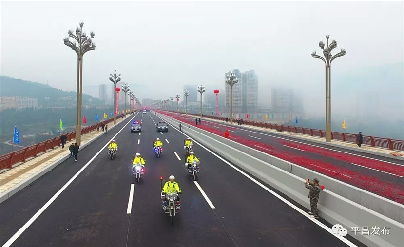 2017年1月16日,巴中平昌迎來盛大而隆重的黃灘壩大橋通車典禮。修建于2013年的平昌縣黃灘壩大橋,長936米、寬33米、雙向六車道連續(xù)T梁鋼構(gòu)橋梁一座,概算總投資3.4億元。該橋既是鐵路平昌站連通巴達(dá)高速公路和縣城繞城路的樞紐工程,又是連接老城和新區(qū)的便捷通道,功能特殊,意義重大。