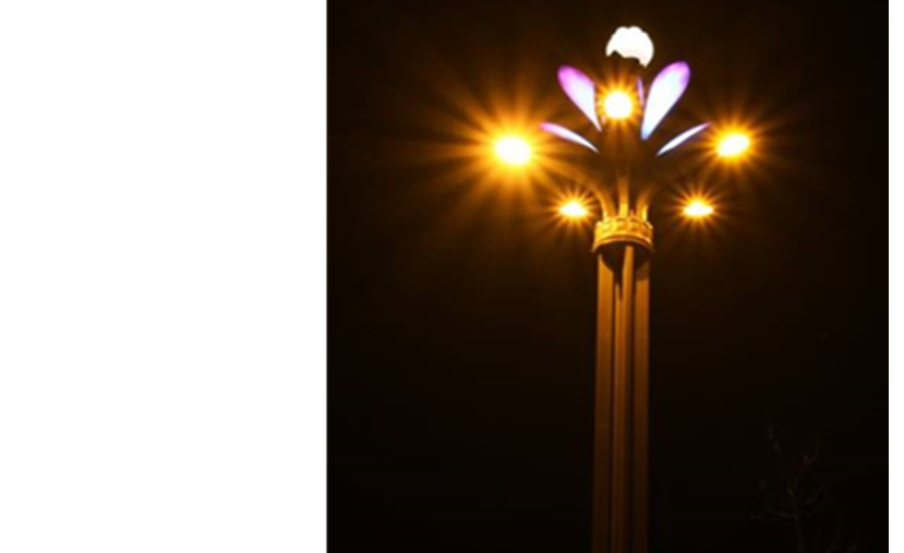 燈桿頂部裝飾座提取蓮花寶座特征進(jìn)行開(kāi)模制作,增加燈桿美觀(guān)性。葉片夜景效果荷葉形完美展現(xiàn)出來(lái),使整個(gè)燈型的功能照明和景觀(guān)照明完美結(jié)合。