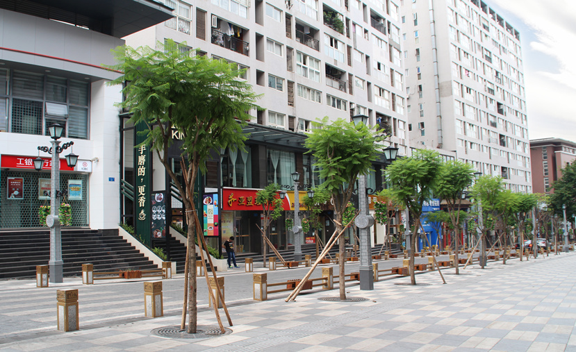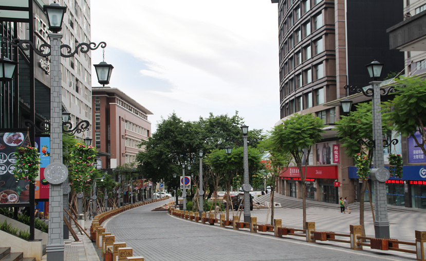 由于金港國際步行街屬于國際化綜合性商業物業區,又距離重慶國際新機場較近,人流量車流量都很大,對燈光的要求較高。“民國風情”燈高16.5米,主光源和裝飾光源皆采用LED,彰顯節能環保理念。“民國風情”燈既滿足了步行街的照明需求,又顯示出濃郁的民國風情,形成了獨具特色的城市景觀。