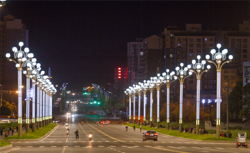 為深入貫徹營山縣委縣政府“堅持生態宜居,建設美麗營山”的發展思路,加快城市提檔升級步伐,營山縣公共事業管理局從2013年開始對營山城市照明現狀進行整體改造,陸續在營山城區主要道路分別安裝四叉五火玉蘭燈、八叉九火玉蘭燈、神暉燈、耀燈以及紅旗庭院燈、吉慶庭院燈等與營山當地文化符號相融合的特色路燈,使營山的城市形象及照明效果得到了極大提升,也收獲了來自營山社會各界的支持與認可。