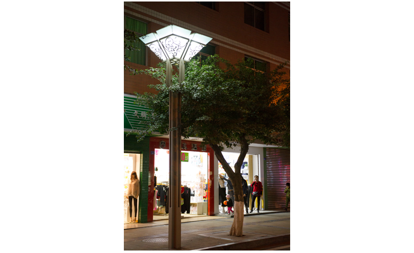 芙蓉中華燈以“芙蓉”為設計元素,采用花瓣的形式,實現了燈桿與燈頭的實體連接。燈具以城市照明華燈造型為根基,在原有景觀照明基礎上,增加了功能照明,使功能照明和景觀照明完美結合,且顯示出燈型的華麗時尚,營造出一幅“華燈耀營山”的美麗景象。