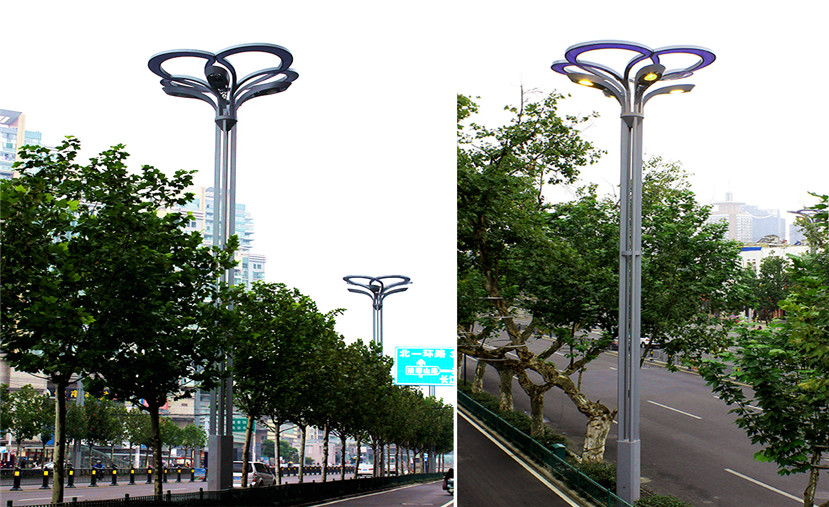 “桂冠”燈以月桂和花環為創作元素,以桂冠之姿,迎八方來賓,整體造型簡約大氣。為保持整體道路照明的統一性,凸顯勝利路作為迎賓大道的特殊性,“桂冠”燈高15米,體量較大、景觀性強,滿足了勝利路道路景觀形象的統一性。