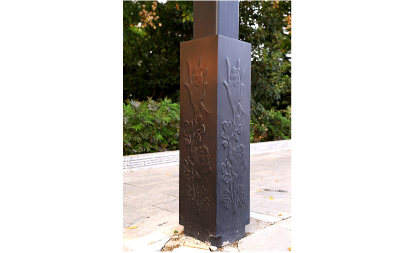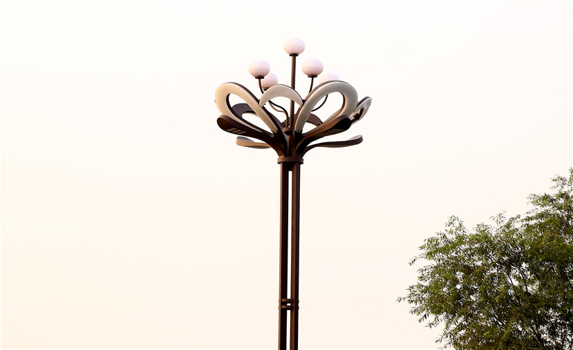 龍是中華文化里的主要圖騰、主要象征, 封建時代,龍是皇權(quán)的象征,皇宮使用器物也以龍為裝飾。設(shè)計者以龍為設(shè)計元素,燈型主體雕刻有兩頭欲破蒼穹的龍,營造了一個創(chuàng)新、包容、獨(dú)立、奮發(fā)向上的精神。燈桿底部的燈箱上刻有牡丹圖案形象生動地展示了龍門石窟的景區(qū)風(fēng)貌,龍燈燈桿裝飾七彩節(jié)日氛圍燈,使龍燈成為一道亮麗的風(fēng)景線,營造出喜慶、熱鬧、祥和的景區(qū)氛圍。