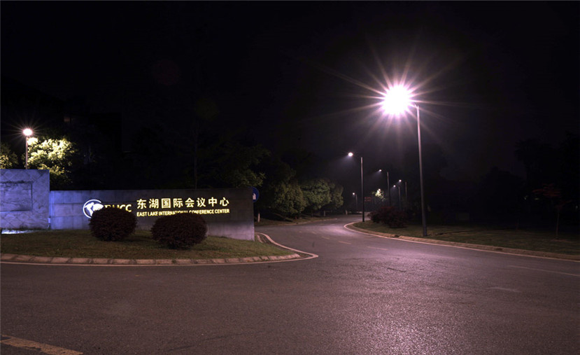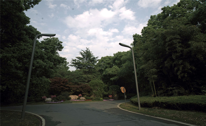 同時,華體照明根據東湖賓館接待區內道路和周圍環境,采用色溫為3000K的100瓦LED光源,燈桿高7.5米,燈桿高度和照明亮度和周圍環境很好地吻合,毫無違和感。