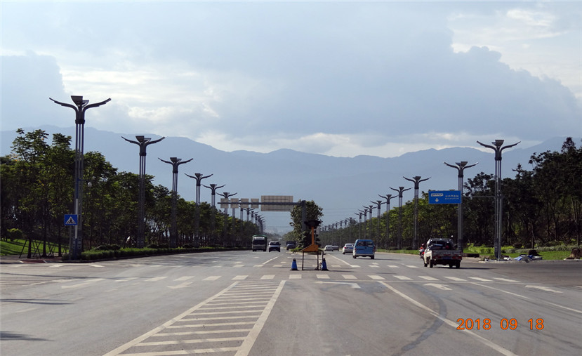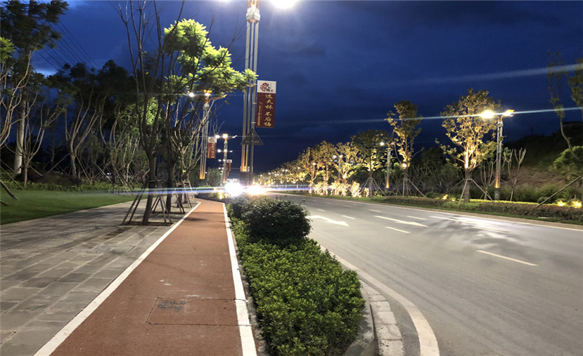 四川華體照明科技股份有限公司(股票簡稱:華體科技 股票代碼:603679)有幸參與到該項目的路燈建設中,為業主方量身定制創意系列“流光溢彩”路燈近500套?!傲鞴庖绮省睙粜驮O計以簡潔流暢的線條為設計元素,結合現代簡潔的設計手法,提取流暢的線條,燈臂如展翅翱翔的翅膀,寓意城市蓬勃發展、日甚一日。