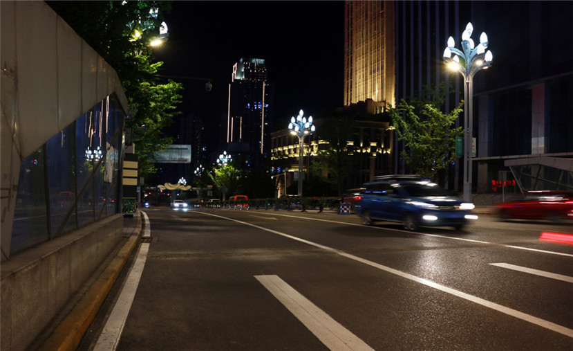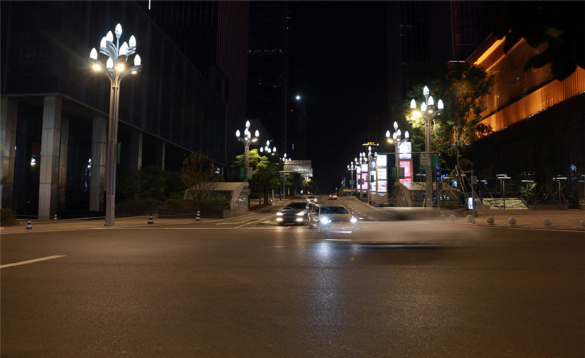 淺灰色的燈桿,代表著重慶這一座充滿著青春活力的城市靚麗的色彩,而皎潔的LED光源,也大大提升了江北城夜間照度和亮度,也與江北城的夜景景觀照明相互配合,展現出3D重慶夜間的繁華。