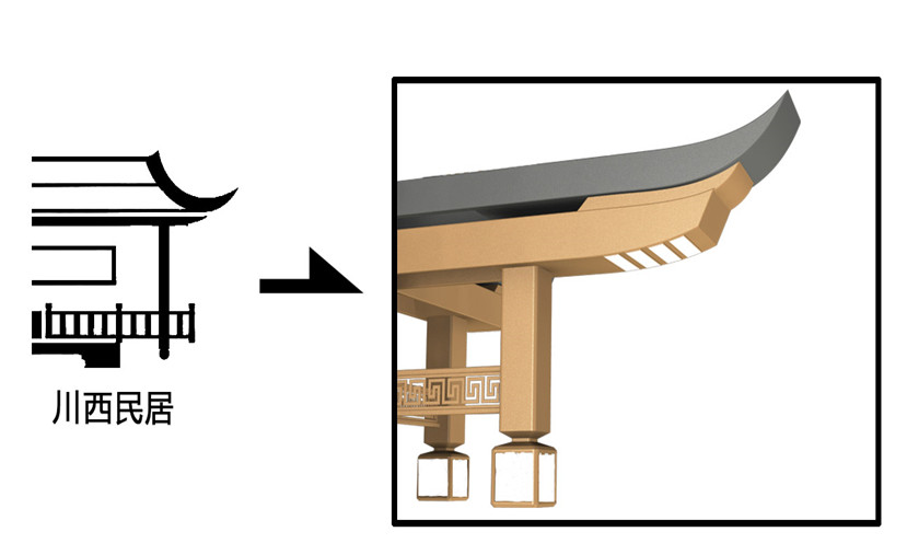 紅旗燈的燈頭部分,通過提取紅旗飄揚的流線型,紅旗飄揚預示著勝利,也能很好地體現紅色文化的歷史意義。