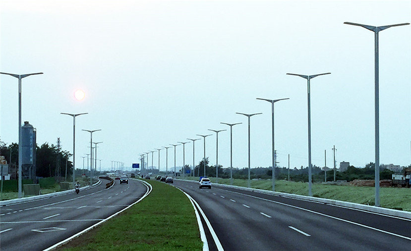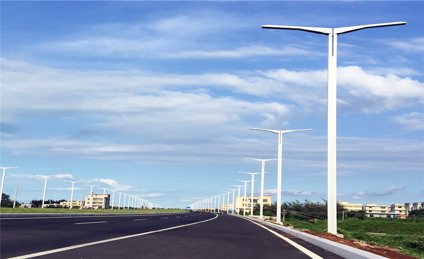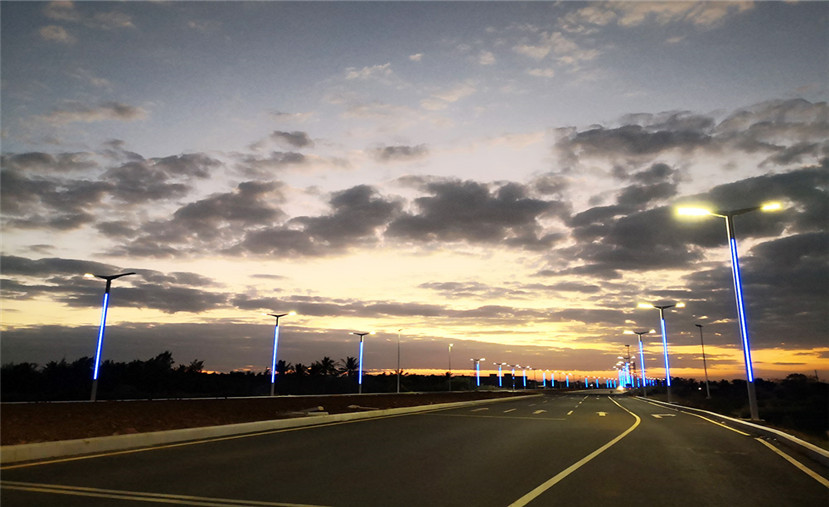 華體科技根據江東大道“世界眼光、國際標準、海南特色、高點定位”的要求,為業主方定制設計了“鋒飛”現代路燈近900柱,安裝在江東大道長達15公里的道路上。