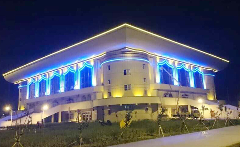 新疆阿圖什市,素有“無花果之鄉(xiāng)”美稱。為塑造城市新形象,華體照明受托承接了該市體育中心的建筑樓體亮化工程。在項目中,以突出亮化與城市環(huán)境地貌協(xié)調(diào)的理念,滿足創(chuàng)新與發(fā)展的需求,實(shí)現(xiàn)了表現(xiàn)手法藝術(shù)化、資源節(jié)約綠色環(huán)保化、燈光設(shè)備現(xiàn)代化的和諧總體效果。