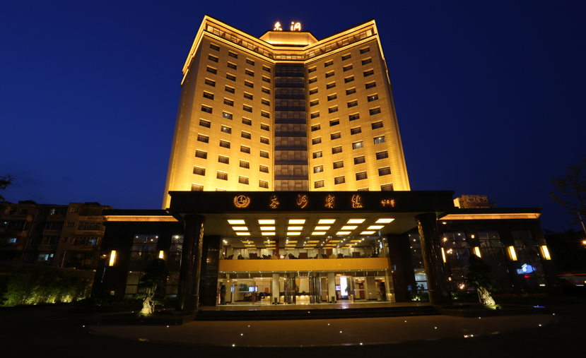 迎賓入口處地面將點光與石材重新結合來做迎賓的引導,亮點此起彼落呼應夜空中的繁星,在心理層面也產生了行走的節奏感,而階梯的光線條除了增加行走的安全性也提升了門廳的雍容氣派感。從金河賓館光環境角度觀看城市新地標的產生,由天際到都市,從街道回歸到人的尺度,運用光的技巧重新定義視覺尺度新美學。建筑整體由上而下,隨著光層次的分布,在喧鬧的街道中,主導了夜空視覺的焦點。