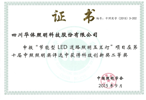 華體節能型LED道路照明玉蘭燈獲中照獎科技創新二等獎