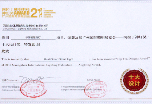 華體智慧路燈獲阿拉燈神燈獎十大設計獎