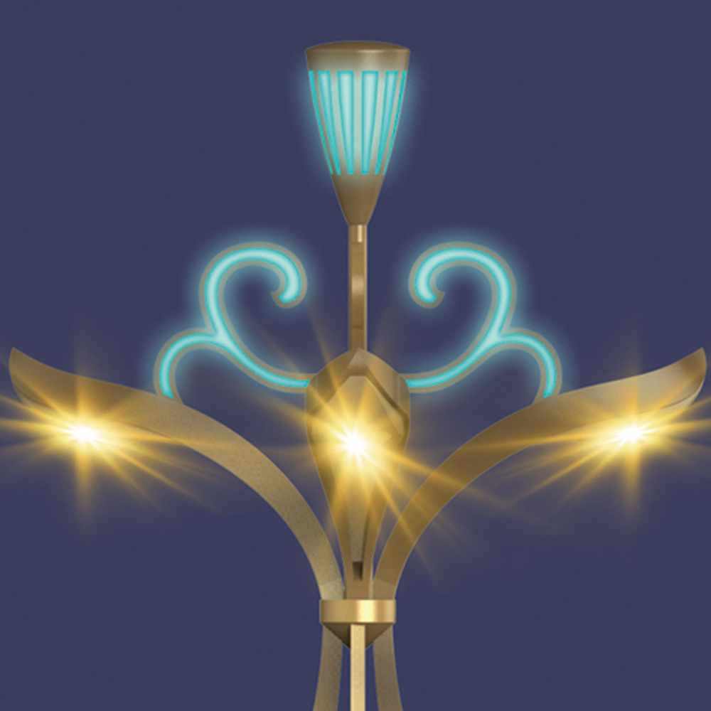 燈型以蓮花為創(chuàng)作元素,經(jīng)過設計者的提煉,將蓮花與花瓶的形態(tài)相結合;