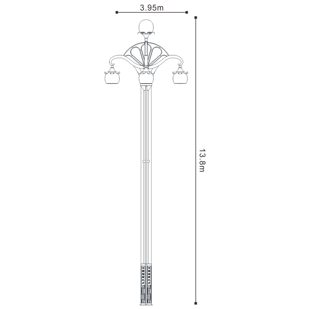 燈桿主體、桿體、底座材質均為金屬鋼件,表面熱浸鋅后噴塑處理。