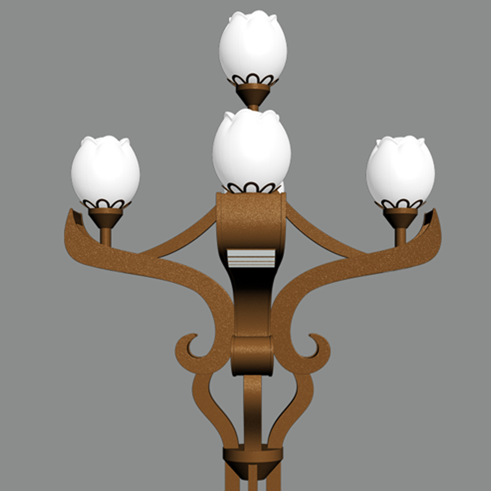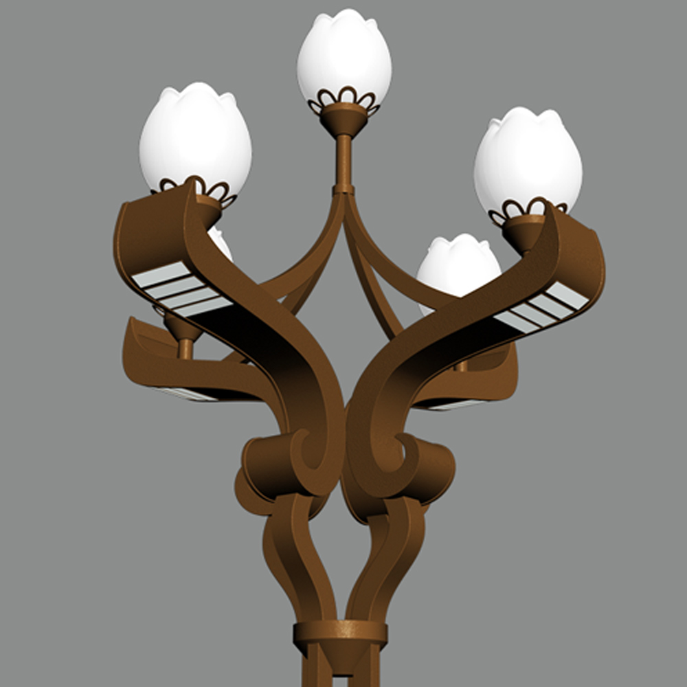 燈具的設(shè)計(jì)主要通過(guò)牛頭、牛角外部線條來(lái)抽象造型,集功能照明與景觀照明為一體的戶(hù)外照明工具;
