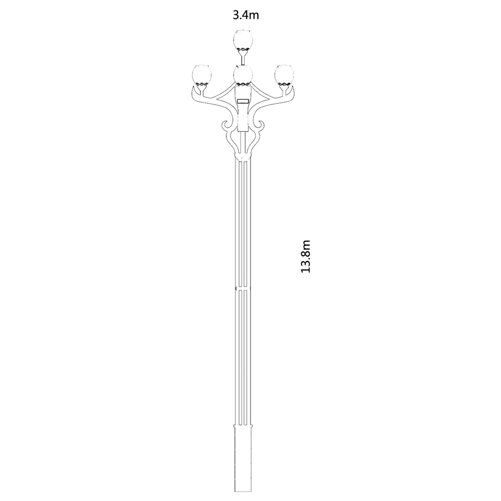 燈桿主體、桿體、底座材質(zhì)均為金屬鋼件,表面熱浸鋅后噴塑處理。