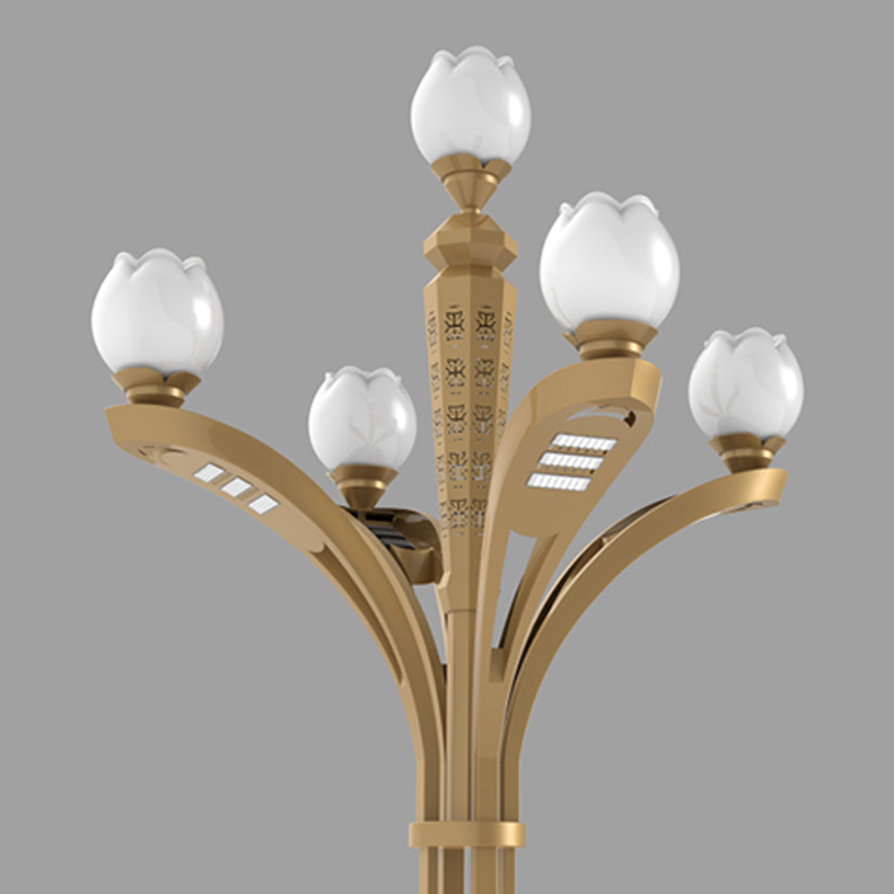 中華燈是一款極具中國(guó)特色,外觀大方的多等頭燈具。芙蓉中華燈是在傳統(tǒng)中華燈的基礎(chǔ)上進(jìn)行了改良,保留其神韻,切加入新的元素,巧妙的運(yùn)用花瓣的形式,實(shí)現(xiàn)了燈桿與燈頭的實(shí)體連接;