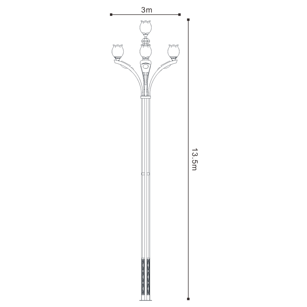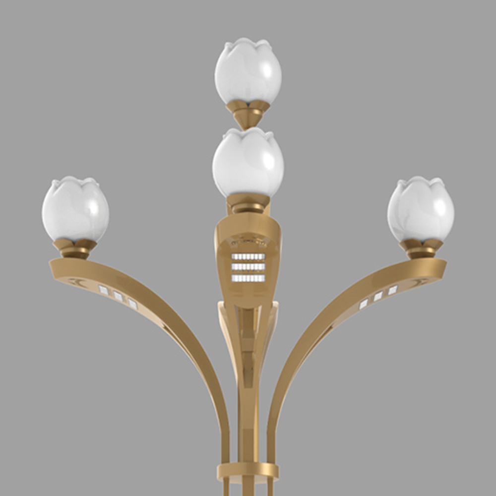 該款燈可以在原有景觀照明基礎(chǔ)上,增加了功能照明,使功能照明和景觀照明完美結(jié)合。可將LED光源巧妙的配置于戶外文化定制燈具中,替代傳統(tǒng)鈉燈及節(jié)能燈光源,使用革命性創(chuàng)新,在不影響使用及美觀的情況下,降低該類裝飾性景觀路燈的功率密度,切可在桿體內(nèi)側(cè)加裝華體單燈智能照明管理系統(tǒng)。