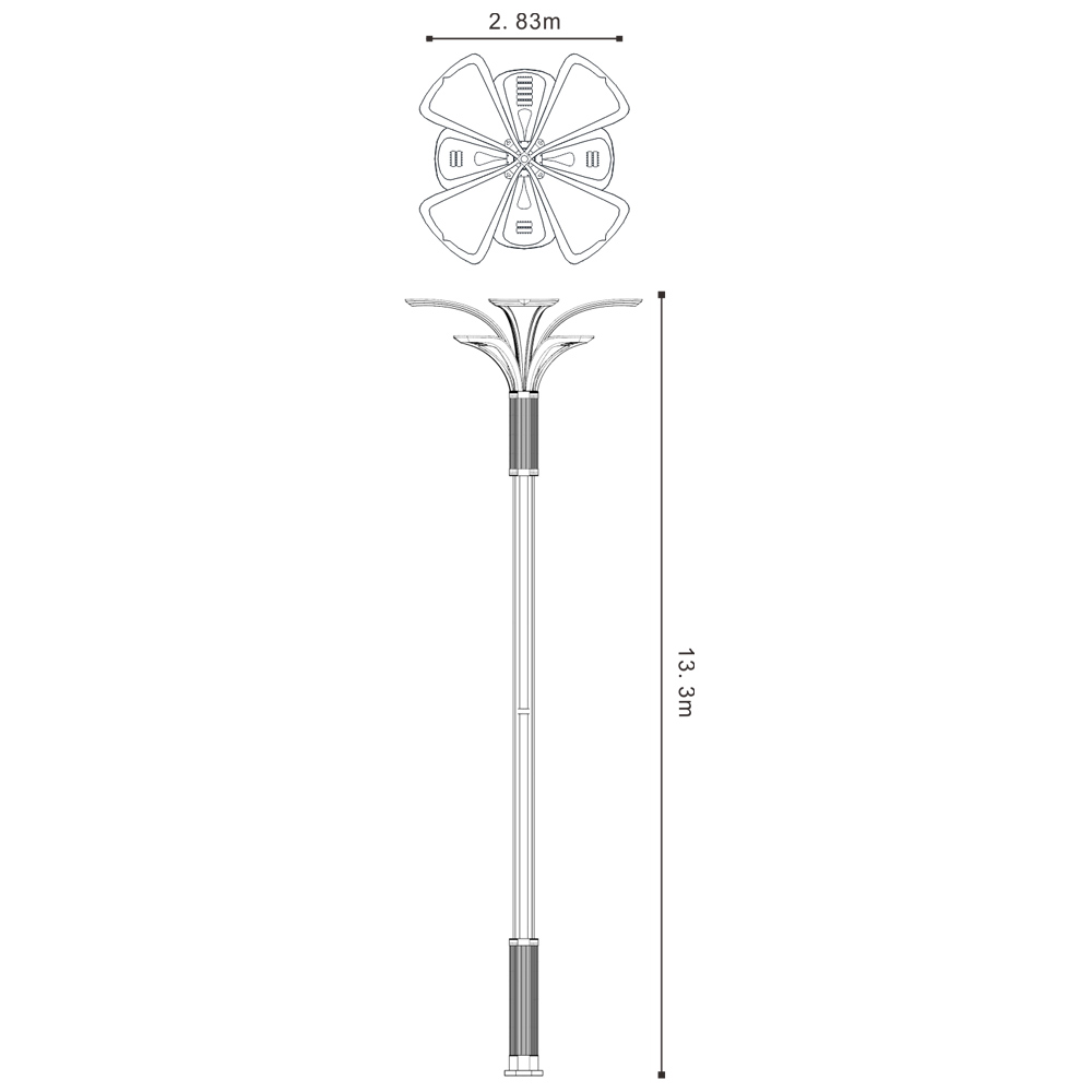 整體造型優美、獨特,結構精致巧妙,既滿足了道路照明的需求,又形成獨具的地方特色城市景觀,提升了城市品位,給市民帶來一種回歸自然的感受;