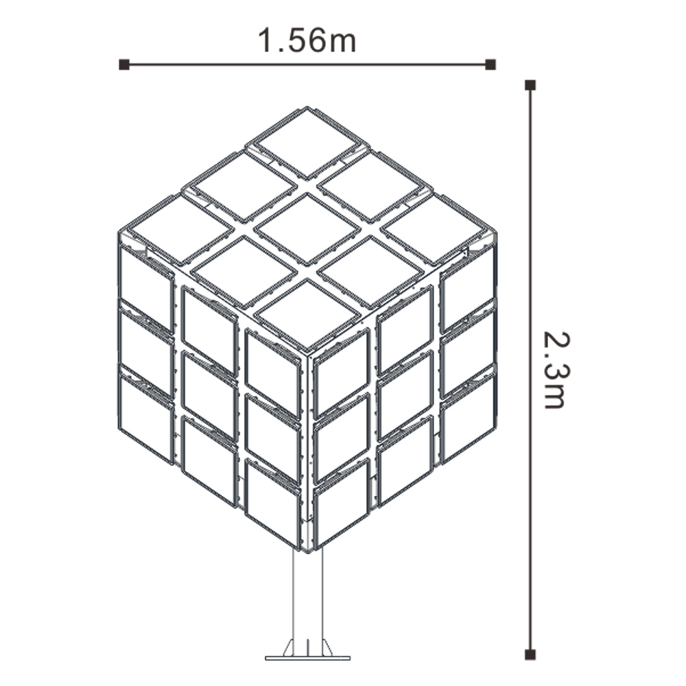 燈型主體采用智慧游戲“魔方”的造型,配以LED光源,體現新科技智慧;