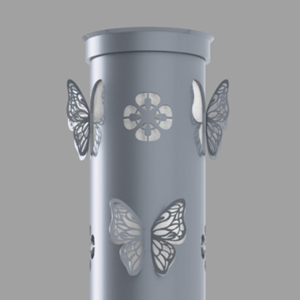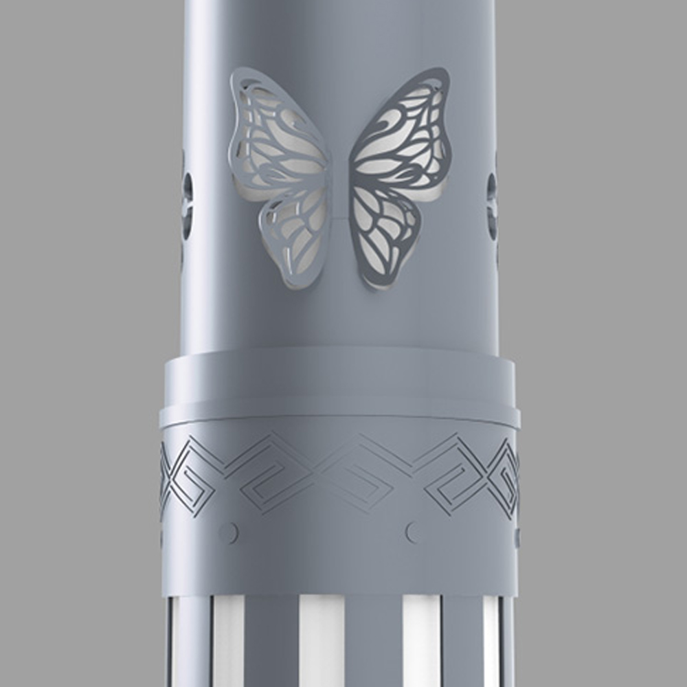蝶戀顛覆傳統燈具的單一造型,以鏤空花紋的圓柱燈體,配以一只只翩翩飛舞的鏤空“蝴蝶”,整燈顯得十分靈動、精美、大方。