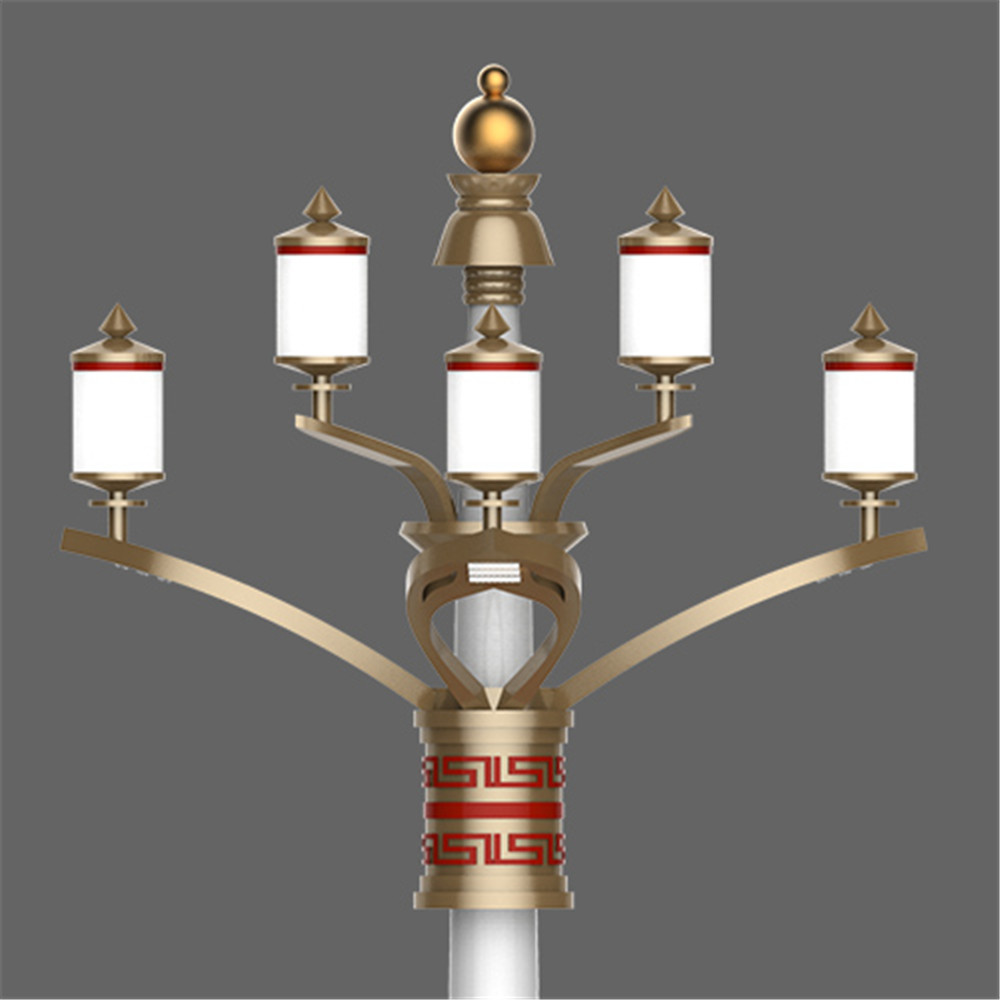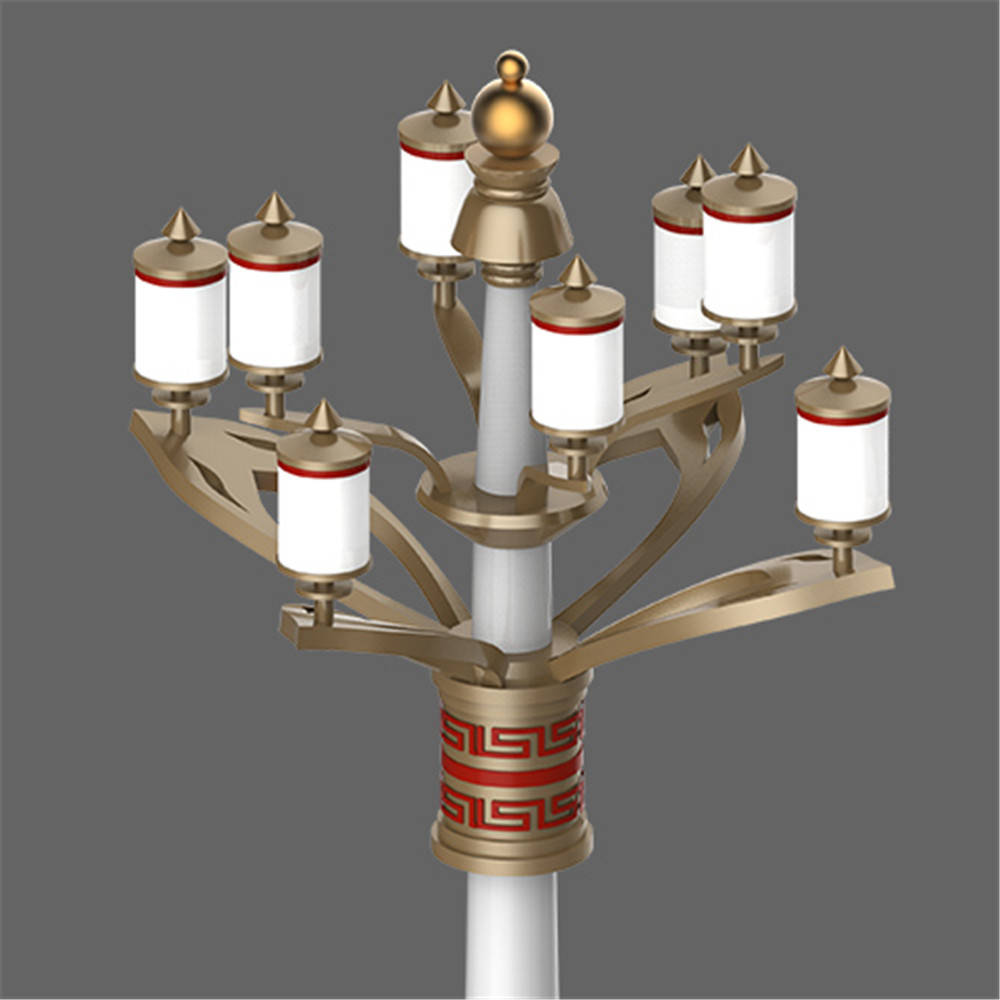 設(shè)計以蓮花為元素構(gòu)成燈臂,裝飾光源為藏傳佛教轉(zhuǎn)經(jīng)筒演化而來,蘊含佛法光芒四射之意。白塔形式的底座表現(xiàn)濃厚的藏地色彩。