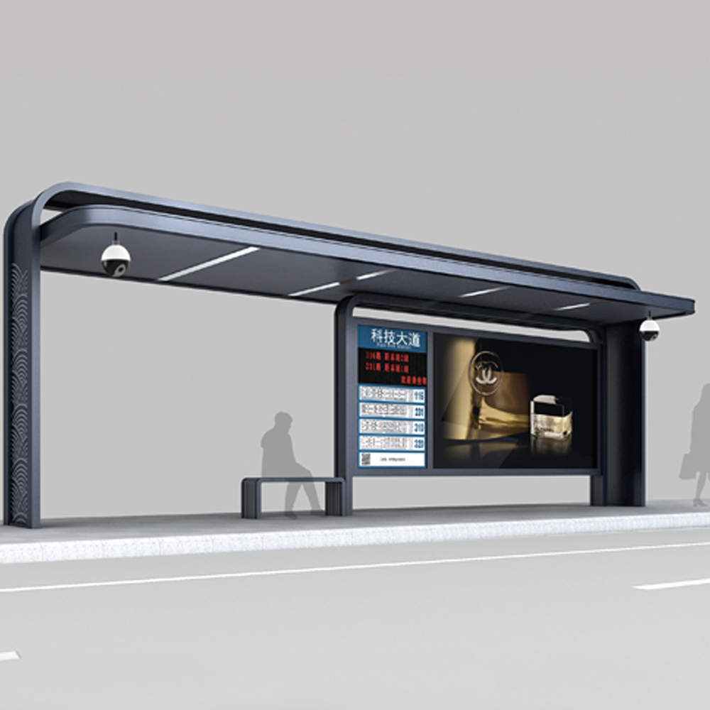 公交車站頂部配有LED節能燈, 結構美觀, 不容易受損, 壽命時間長, 節能環保 。